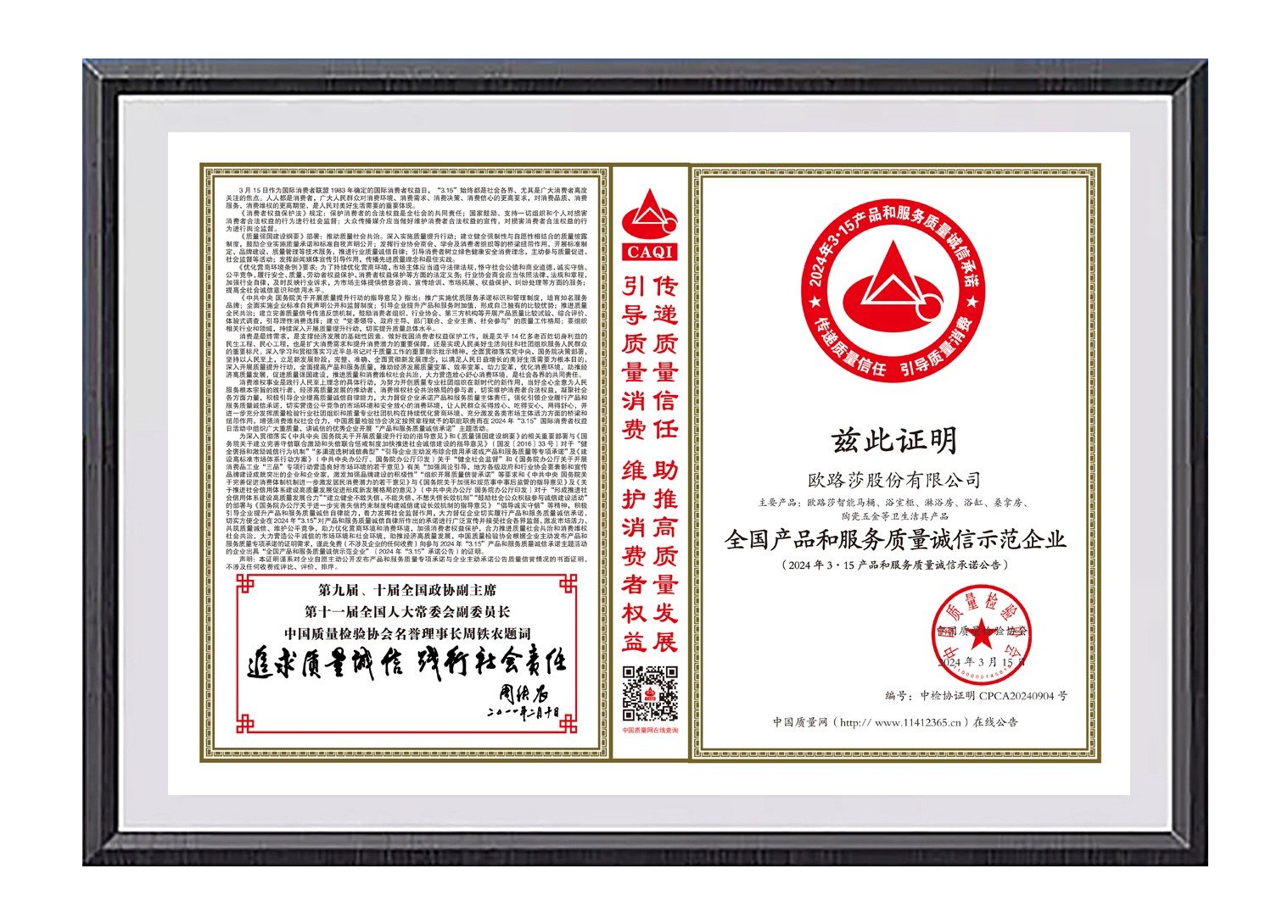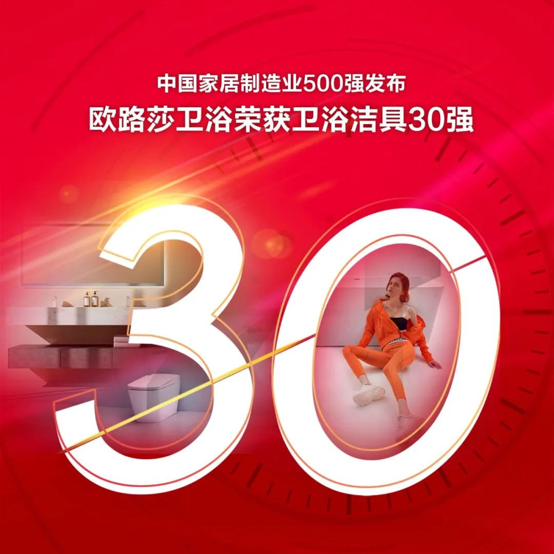 2021歐路莎衛(wèi)浴入選中國家居制造業(yè)500強 榮獲衛(wèi)浴潔具30強 -