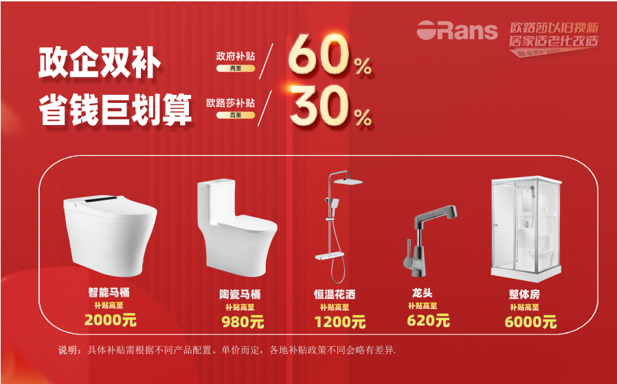 為了讓更多家庭享受到這份關(guān)愛,認(rèn)真貫徹落實(shí)黨中央、國務(wù)院關(guān)于消費(fèi)品以舊換新工作決策部署,精心策劃,高效執(zhí)行,重點(diǎn)支持舊房裝修、廚衛(wèi)等局部改造、居家適老化改造,歐路莎衛(wèi)浴積極響應(yīng),推出了前所未有的雙重補(bǔ)貼政策!政府補(bǔ)貼高達(dá)60%,疊加歐路莎補(bǔ)貼可高至30%,這意味著只需要平時(shí)1/3的預(yù)算,就能享受到全面的居家適老化改造服務(wù),真正實(shí)現(xiàn)了物美價(jià)廉,讓愛無負(fù)擔(dān)。