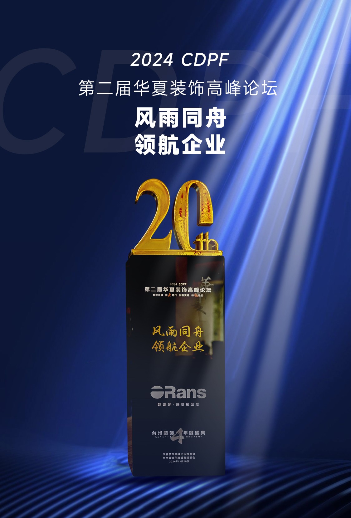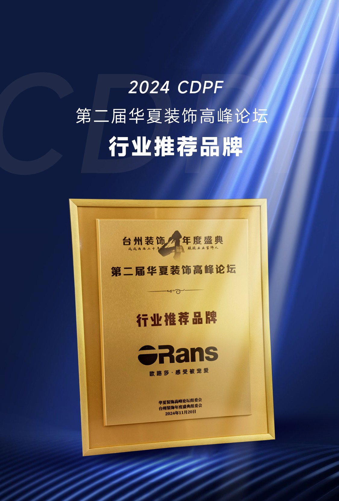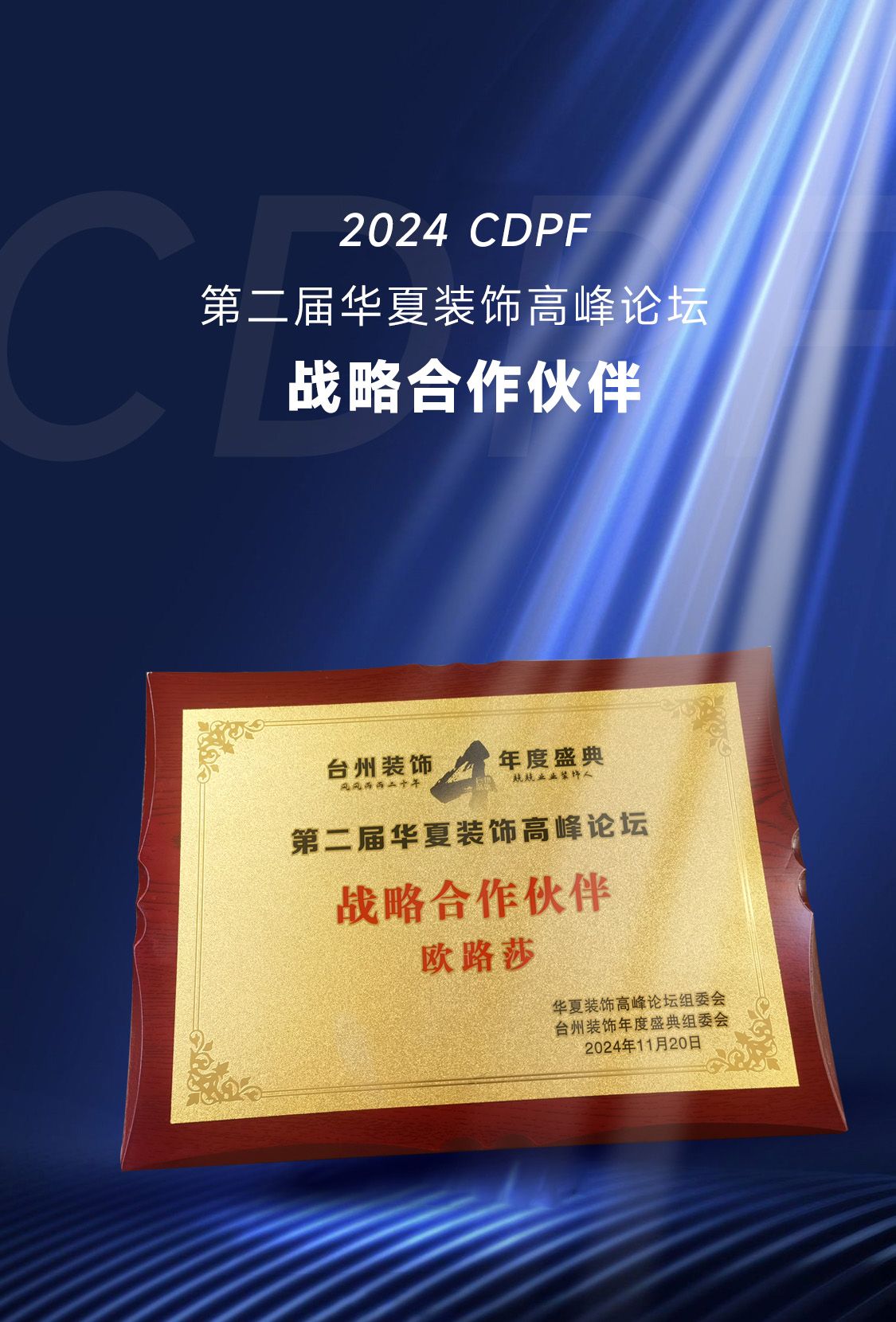 11月20日,2024·CDPF 第二屆華夏裝飾高峰論壇暨第四屆臺州裝飾協(xié)會年度盛典在浙江臺州白天鵝酒店隆重舉辦。歐路莎衛(wèi)浴作為輪值會長及協(xié)辦單位,董事長林華友應(yīng)邀出席并作為論壇嘉賓參與重要議題研討。