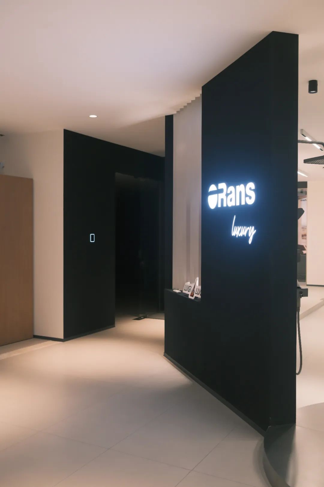 來(lái)到二樓展廳,入口處的設(shè)計(jì)簡(jiǎn)潔而大氣,黑色墻面莊重沉穩(wěn),“ORans Luxury”的標(biāo)識(shí)在柔和燈光的映襯下格外醒目。