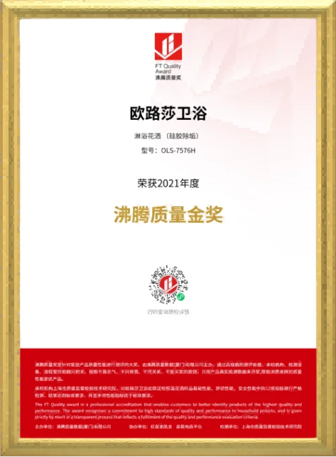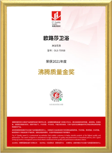 在2021年度沸騰質量獎測評中,歐路莎衛(wèi)浴參評的智能馬桶IT-321、淋浴花灑OLS-7595B、淋浴花灑(硅膠除垢)OLS-7576H、普通連體座便器OLS-950等4款產(chǎn)品,經(jīng)過檢測機構專業(yè)、嚴格檢測,結果都達到標準要求,并且多項性能指標遠優(yōu)于標準要求,獲得“沸騰質量金獎”。