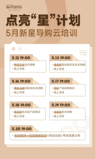 2022歐路莎點亮“星”計劃,5月新星導(dǎo)購云培訓(xùn)即將開始,時間安排如下: