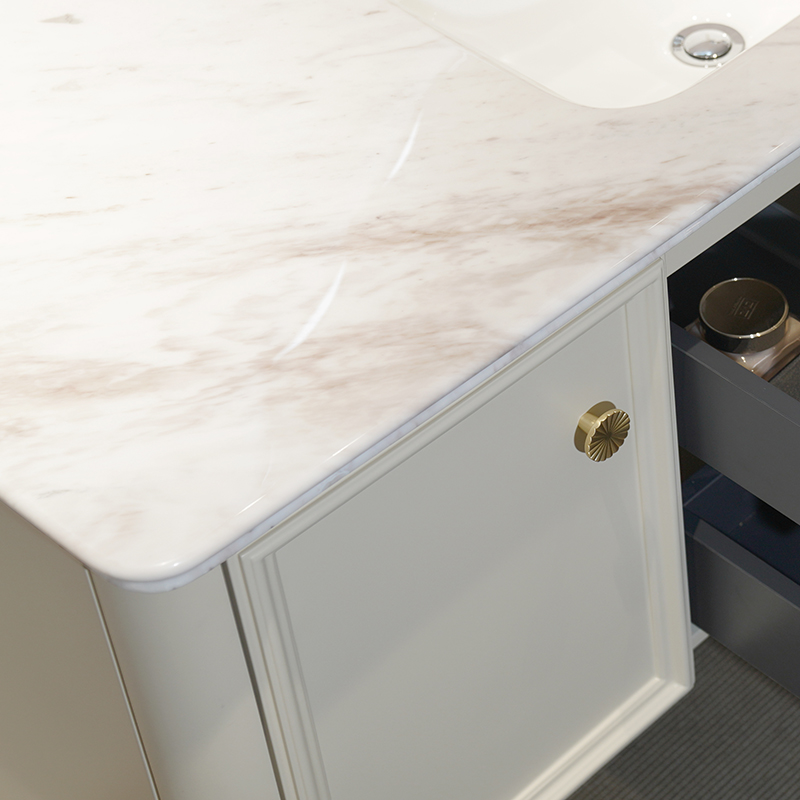 材質(zhì):大理石無縫拼接陶瓷盆、多層實木