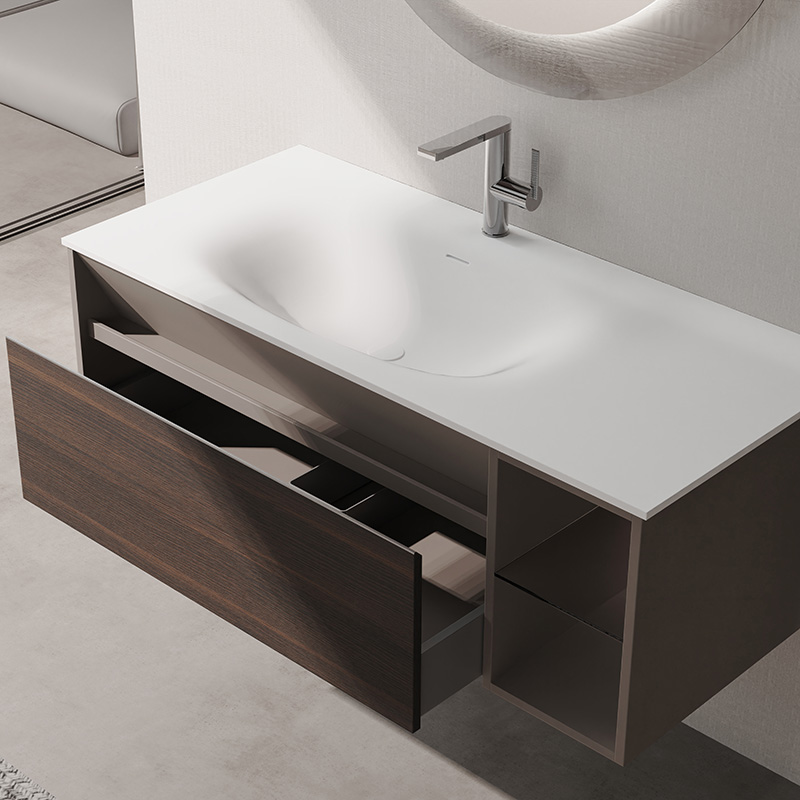 奇美石一體臺(tái),盆溫潤觸感,易潔不掛污,多功能分區(qū)儲(chǔ)物, 收納更有序