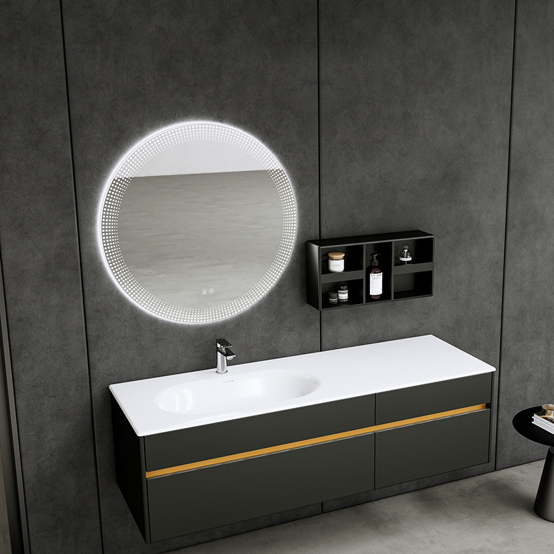 材質(zhì):白色可麗耐一體盆/銀煙霧柜體/智能鏡/多層實(shí)木