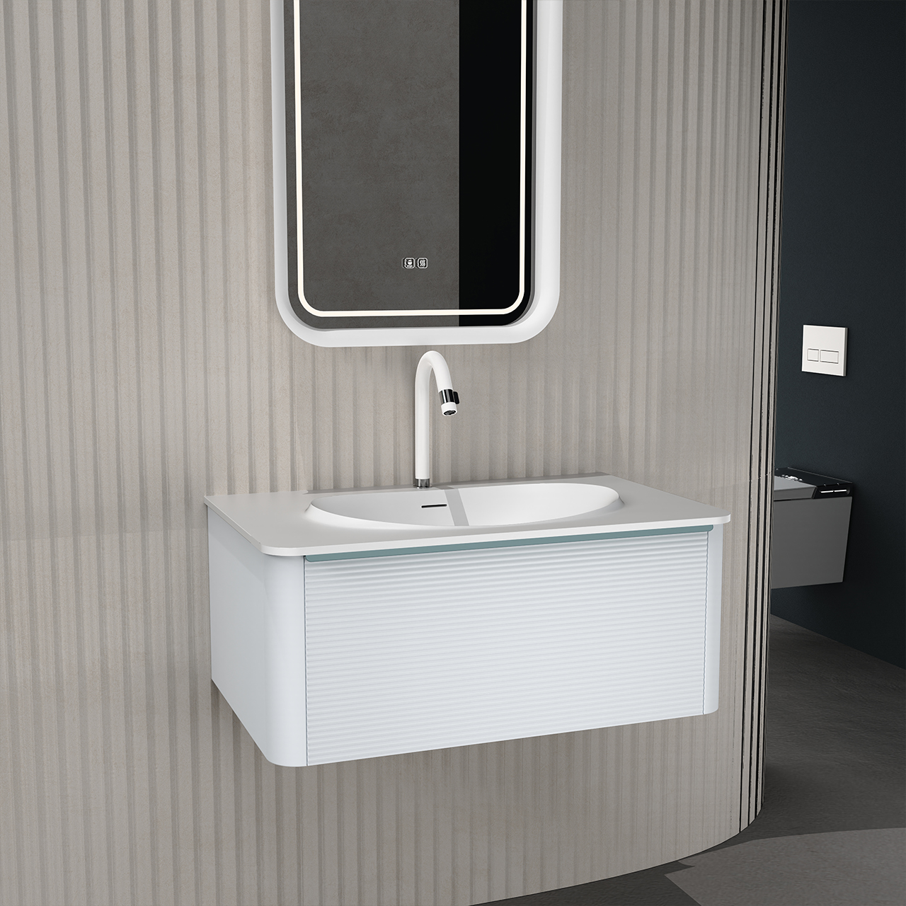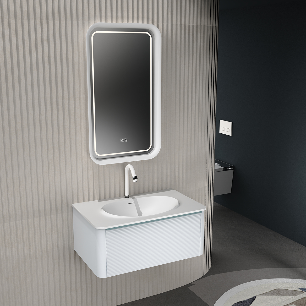 材質(zhì):白色奇美石一體盆/白色金屬框智能鏡/智能鏡/多層實(shí)木