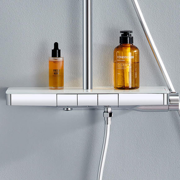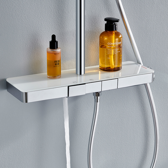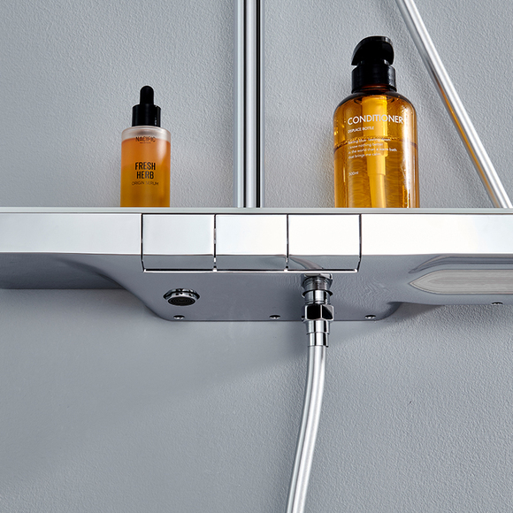 玻璃鋼化的超大平臺(tái),輕松放置多種洗浴用品。