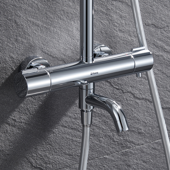 左側旋鈕同時控制頂噴/手持/下出水檔位切換清晰,手感順暢;右側按鍵智能控溫,恒溫出水,帶來持久的溫暖體驗。