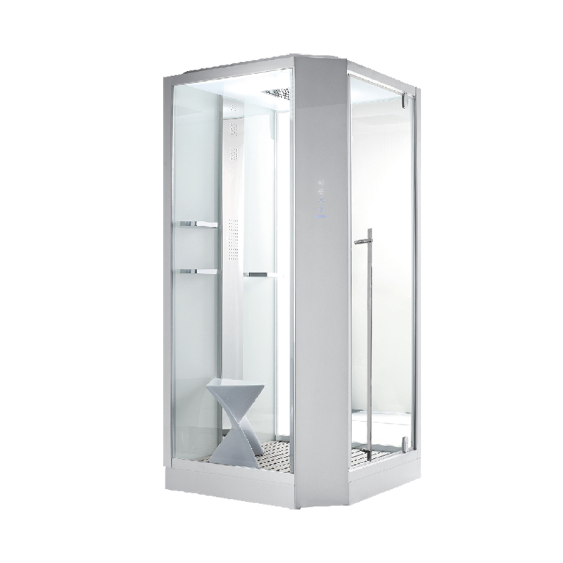 鏡面不銹鋼,印花高溫釉,蒸汽、頂噴、背噴、花灑、置物架、毛巾架、頂燈、收音、風扇、喇叭、坐凳