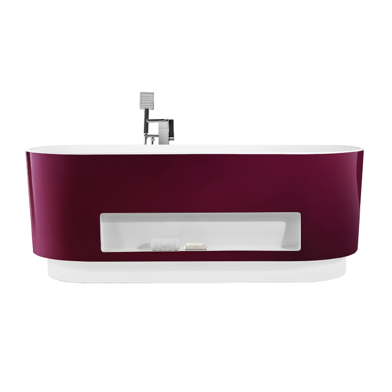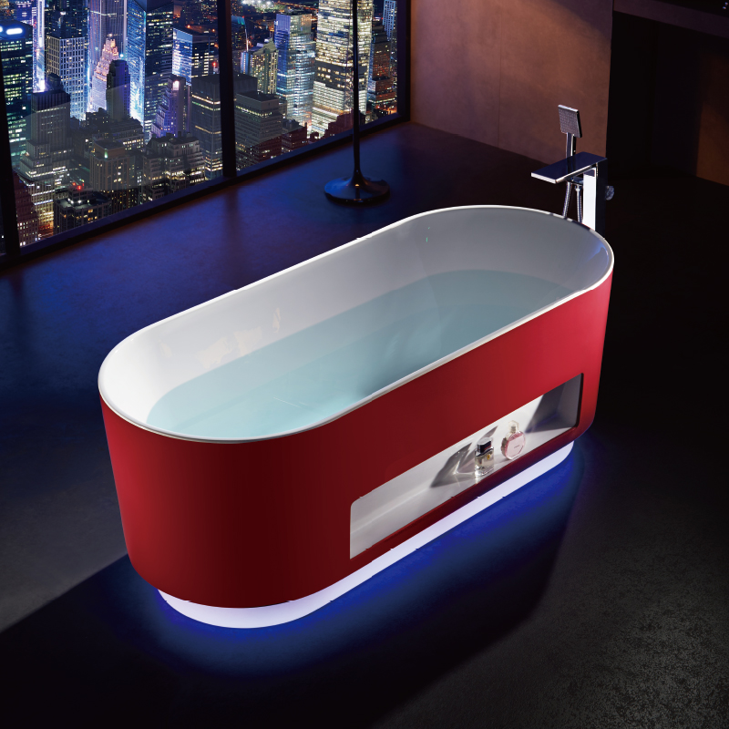 全新浴室概念,大膽創(chuàng)新雙色無縫一體,裙邊內(nèi)嵌置物,配以微波感應360°立體感應七彩燈帶,玫瑰紅嫵媚動人,智感十足。