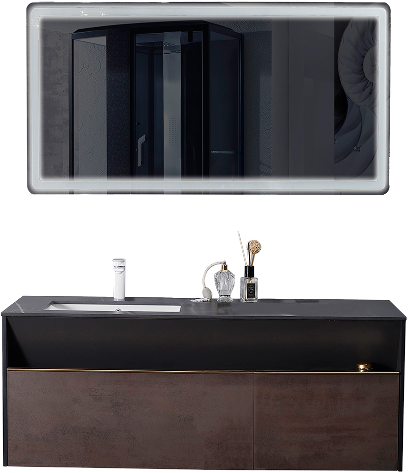 ?主打巖板材質(zhì),采用超薄巖板臺面堅固耐磨,盡顯高檔品位,圓弧倒角防磕碰,細節(jié)處貼心處理大幅提升浴室柜的檔次。