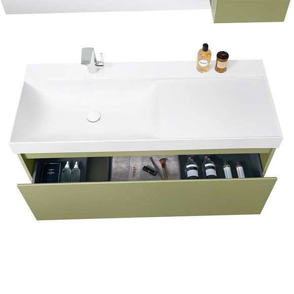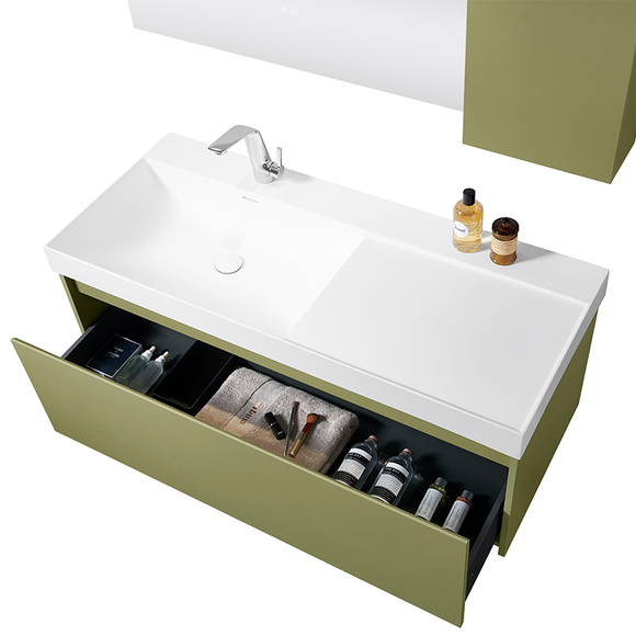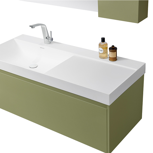 鋁制石一體成型臺面,表面光澤晶瑩柔和、質地細膩,污物易擦凈,方便清潔維護。