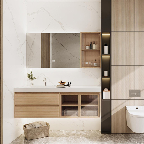 緩沖抽屜,木紋鋁框門柜內(nèi)帶LED燈,告別黑暗,輕松照亮。