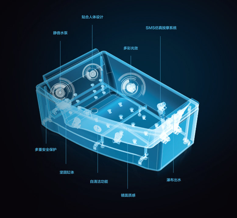 缸體機構(gòu)依據(jù)中國人的體態(tài)特征, 運用人體工程學設計, 無論坐或躺都舒適感極佳。